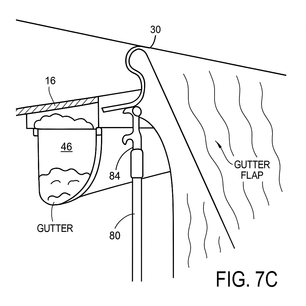 Gutter Flap: Integrated fabric overlay designed to fold over and seal gutters against ember entry.